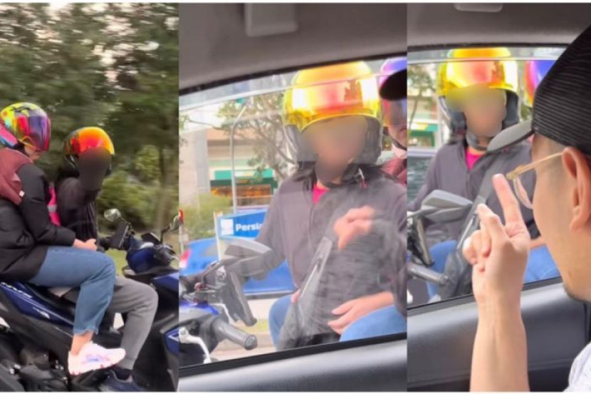 "Ceritanya... saya hendak bawa anak dan isteri berjalan-jalan dekat taman, ketika di lampu isyarat ada sepasang suami isteri bersembang atas motor sehingga tidak sedar lampu sudah lama bertukar hijau.