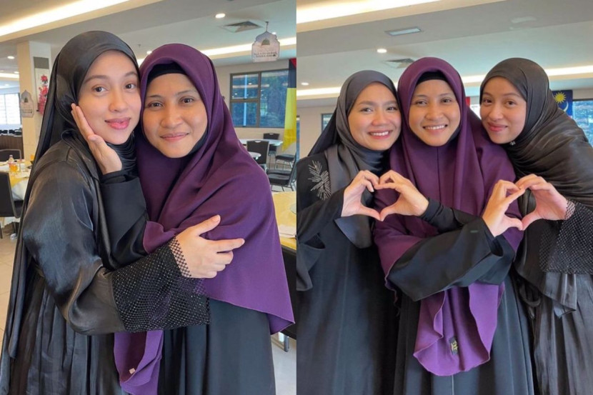Oktovia dan Aprena yang memakai jubah berwarna hitam berpelukan sambil tersenyum gembira dalam gambar yang dimuat naik di Instagram bersama pendakwah berkenaan.
