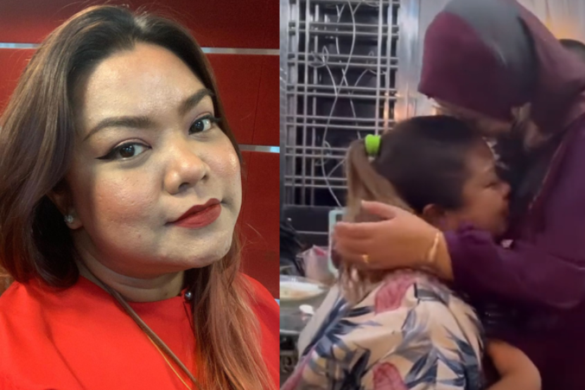 Menerusi video berkenaan, Dina turut mengalirkan air mata sambil memeluk seorang wanita yang berdiri di sisinya.