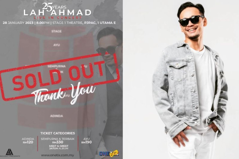 BELUM pun sampai tempoh 24 jam, tiket konsert penyanyi Lah Ahmad, 25 Years Lah Ahmad Live In Concert dilaporkan sudah habis terjual. Lah atau nama sebenarnya Abdullah Ahmad, 42, meluahkan rasa syukur apabila konsertnya itu mendapat sambutan hangat peminat. "Alhamdulillah, Sold out! Dalam masa 24 jam. Syukur Alhamdulillah!" tulisnya di Instagram. Penyanyi itu turut mengucapkan terima kasih kepada semua yang telah membeli tiket konsert berkenaan dan memberitahu peminat yang tidak dapat membeli supaya jangan bersedih. Ramai peminat kecewa tidak sempat membeli tiket konsert Lah. "Terima kasih semua yang sudah membeli tiket semalam dan hari ini. InsyaAllah kita jumpa di sana nanti. "Pada yang tidak dapat membeli tiket konsert, jangan bersedih. Insya Allah ada rezeki lain kali," katanya. ARTIKEL BERKAITAN: Lah Ahmad hormat kelantangan Damian Mikhail kritik V.E. tapi jangan sampai hentam! ARTIKEL BERKAITAN: GV9 jadi pentas VE lepas geram, ucap terima kasih kalau ada anggap mereka saingan hebat Dalam pada itu, ramai peminat yang meninggalkan komen kecewa kerana tidak sempat membeli tiket konsert Lah. Malah ramai memberi cadangan agar pihak penganjur menambah tarikh baharu konsert tersebut. "Buka slot baharu please. "Boleh tak buat konsert dua hari? Tak sempat nak grab. "Allahuakbar, baru nak beli dah sold out. Tahniah bro. "Tambah lagi please. Nak beli website asyik hang," tulis netizen. Penyanyi R&B ini bakal mengadakan konsert pada Januari tahun depan. Untuk info, Konsert 25 Years of Lah Ahmad bakal berlangsung di Stage 1 Theater, PJPac, 1 Utama pada 28 Januari 2023. Konsert itu diadakan bagi meraikan dirinya menceburkan diri dalam bidang muzik, selain bakal menyanyikan 20 buah lagu termasuk karya yang pernah popular bersama kumpulan V.E. Tiket konsert dijual pada harga bermula RM120 sehingga RM330. Dapatkan info dengan mudah dan pantas! Join grup Telegram mStar DI SINI