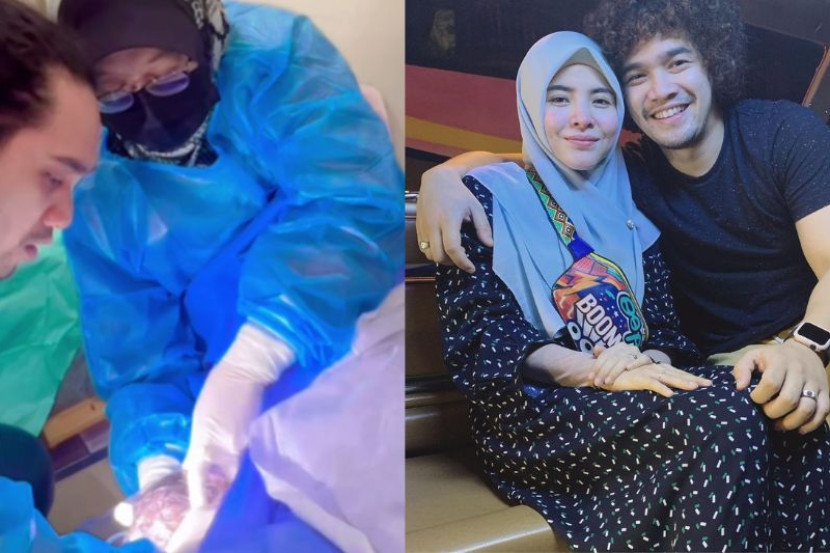 Tidak hanya itu, Nadzmi turut menarik keluar uri dan memotongnya sebelum dilihat melaungkan azan dan iqamah di telinga kanan bayinya.