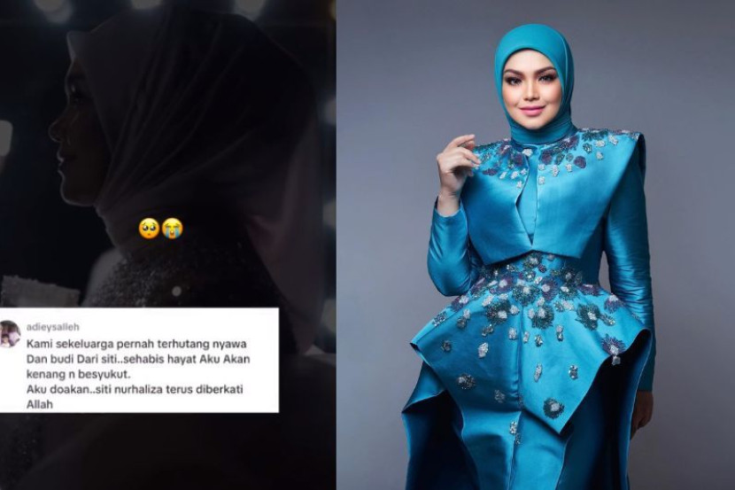 Dalam pada itu, Adiey berkata, sehingga ke hujung nyawanya dia tidak dapat membalas kebaikan Siti dan mendoakan agar penyanyi lagu Menjaga Cintamu itu diberikan keberkatan dalam hidup.