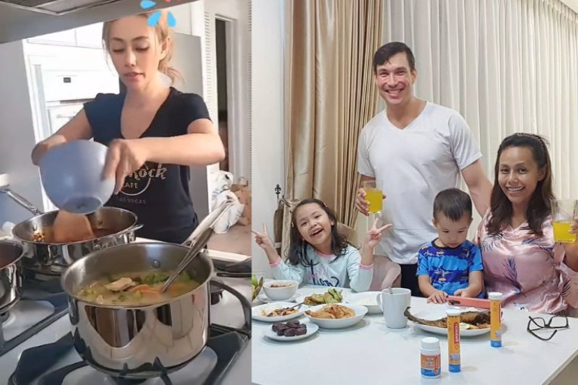 Pelakon itu yang kini berada di Amerika turut memuat naik video dia sedang ligat memasak di dapur pada Selasa.