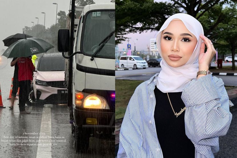 Dalam kejadian sebelum ini, kereta yang dipandu Iman hilang kawalan akibat jalan licin ketika hujan lebat.