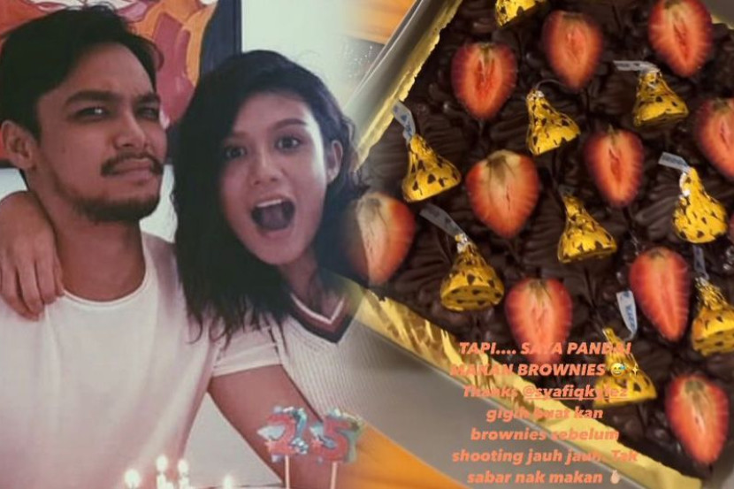 "Tapi saya pandai makan brownies. Terima kasih Syafiq gigih buatkan brownies sebelum shooting jauh-jauh. Tak sabar nak makan," katanya menerusi satu hantaran di Instastory.