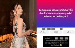 Ruhainies memaparkan tangkap layar kenyataan tersebut yang menulis bahawa dia dan pelakon Zul Ariffin sudah bernikah.