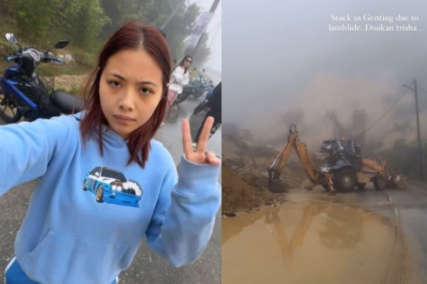Menurut Trisha atau Reqshqa Aqiera Mohd Nasron Ooi, 26, dia bersama kru produksi terperangkap apabila tanah runtuh berlaku di sebuah jalan dari Genting Highlands.