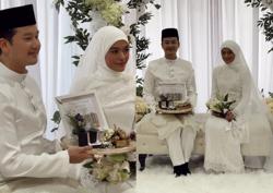 Pasangan suami isteri (kanan) bertuah dihiburkan oleh Ungu.