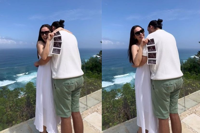 Menerusi hantaran tersebut, dia menunjukan keputusan imbasan kehamilan sambil berpelukan dengan suaminya, Joshua Fitton.