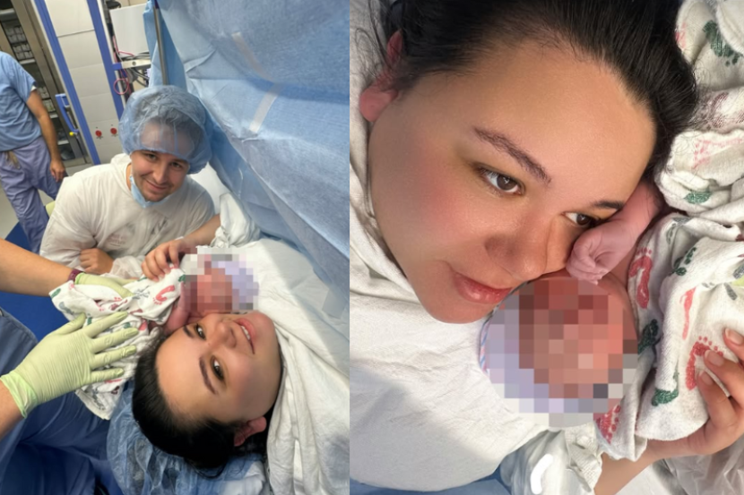 Dalam perkongsian tersebut, Sarah turut memuat naik foto bersama suami dan bayi mereka di bilik bersalin sejurus selepas kelahiran.
