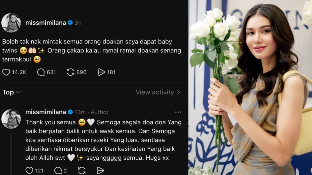 Sebelum ini, Mimi atau nama sebenarnya Mimi Rozaiana Zainal Abidin, 30, memuat naik perkongsian di laman Threads menyatakan hasratnya untuk dikurniakan anak kembar.