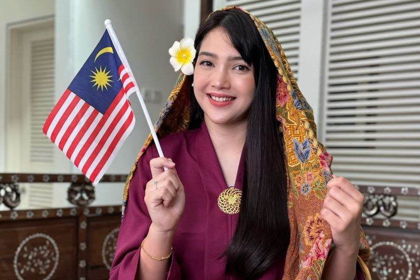 Pelakon ini turut memuat naik gambar memakai baju kurung sambil memegang Jalur Gemilang.
