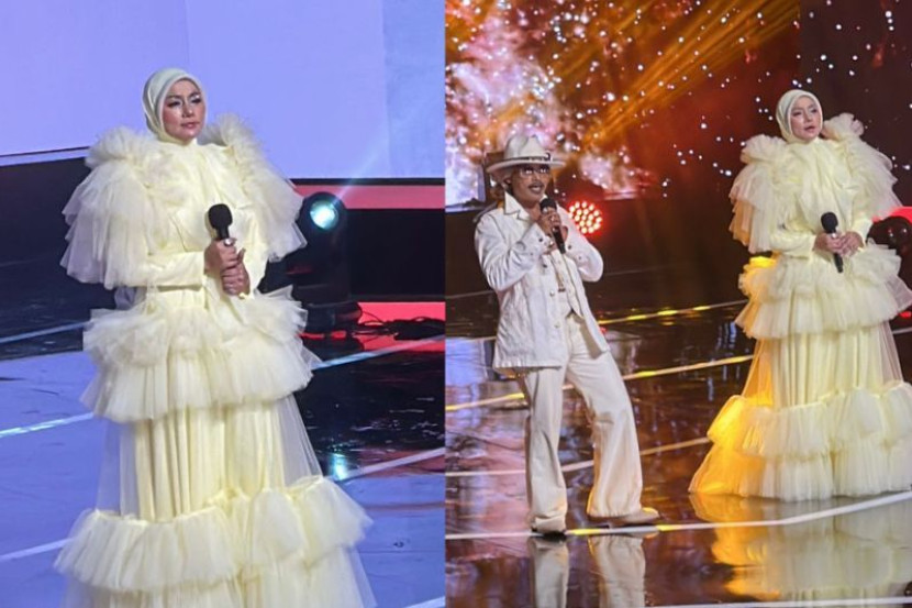 PENGACARA dan pelakon Elly Mazlein tampil bertudung di pentas akhir Kilauan Emas 2025 yang berlangsung di Royale Theatre Shah Alam, Selangor pada malam Sabtu.