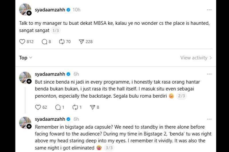 Syada berkongsi perkara itu menerusi sebuah hantaran yang dimuat naik di Threads miliknya.