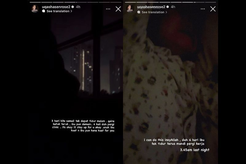 Bukan sahaja tidak cukup rehat, Uqasha atau Nik Zaris Uqasha Nik Sen, 33, memaklumkan dirinya turut demam, namun tetap tabah berjaga demi memastikan anaknya mendapat penjagaan terbaik.