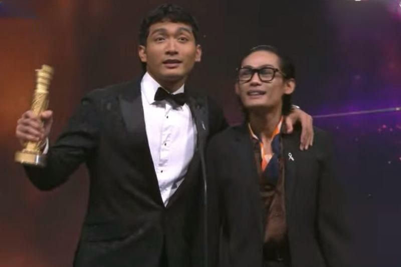 Amir (kiri) pemenang kategori Pelakon Lelaki Harapan FFM34.