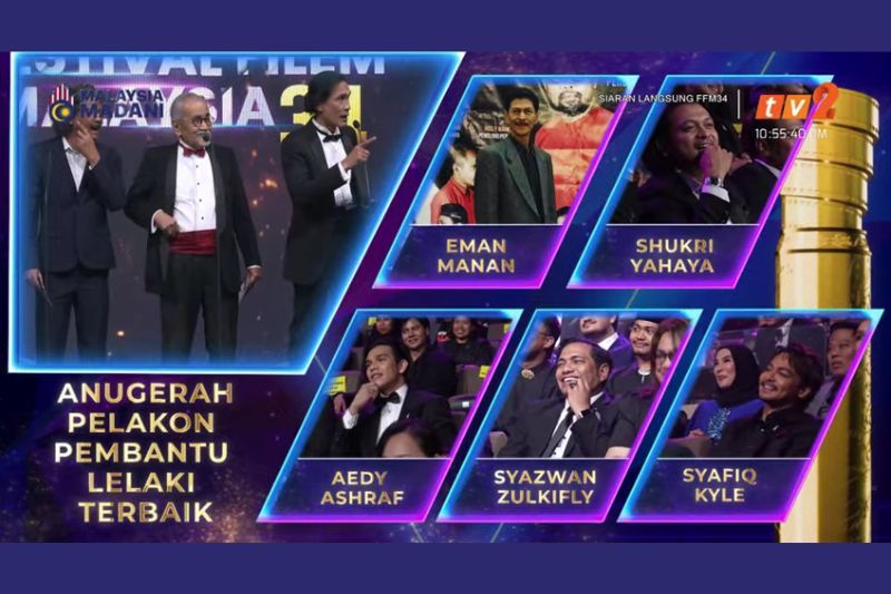 FESTIVAL Filem Malaysia ke-34 (FFM34) mencipta kejutan apabila pelakon Syafiq Kyle dan Syazwan Zulkifly diumumkan sebagai pemenang bersama bagi kategori Pelakon Pembantu Lelaki Terbaik.