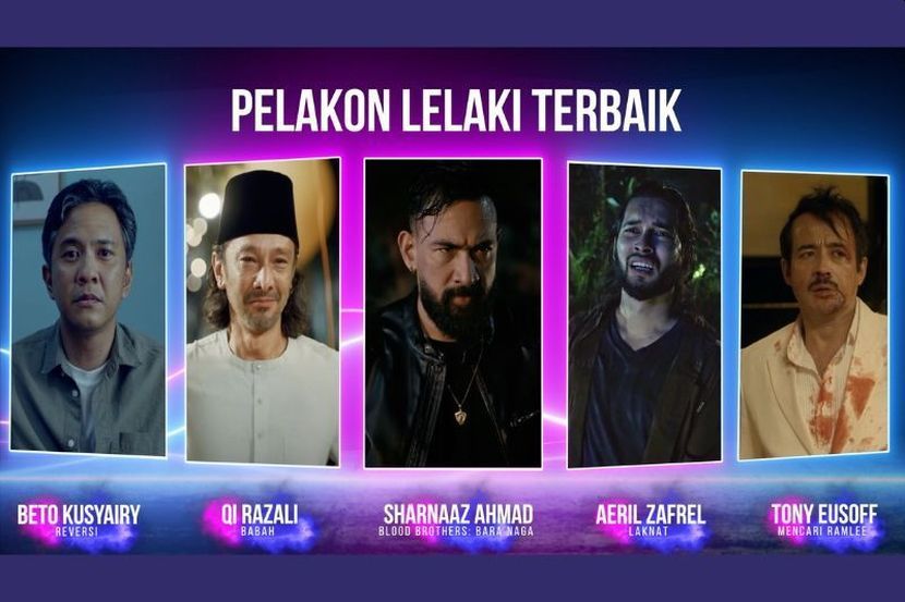 Bagi kategori Pelakon Lelaki Terbaik, lima calon utama ialah Sharnaaz Ahmad (Blood Brothers: Bara Naga), Beto Kusyairy (Reversi), Qi Razali (Babah), Aeril Zafrel (Laknat) dan Tony Eusoff (Mencari Ramlee) apabila masing-masing membawa keunikan dan lapisan lakonan berbeza.