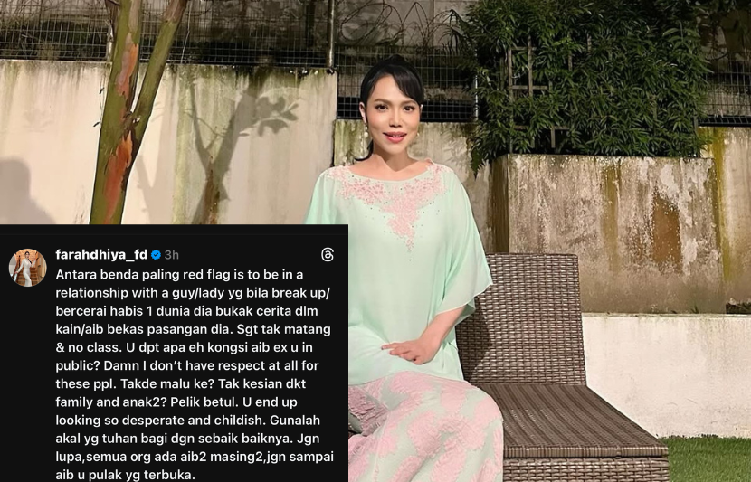 Farahdhiya atau Nur Farahdhiya Mohd Amin, 41, berkata tindakan menceritakan keburukan bekas pasangan kepada umum bukan sahaja menunjukkan sikap tidak matang, malah mencerminkan tahap pemikiran seseorang yang kurang bijak.