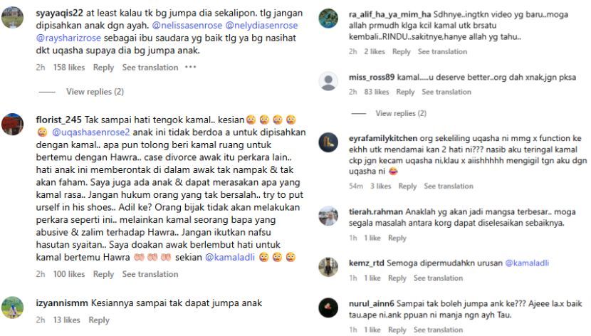 "Anak perempuan tak boleh berpisah dengan ayah dia walau apa pun. Semoga lembut hati Uqasha terima Kamal semula," antara komen netizen.