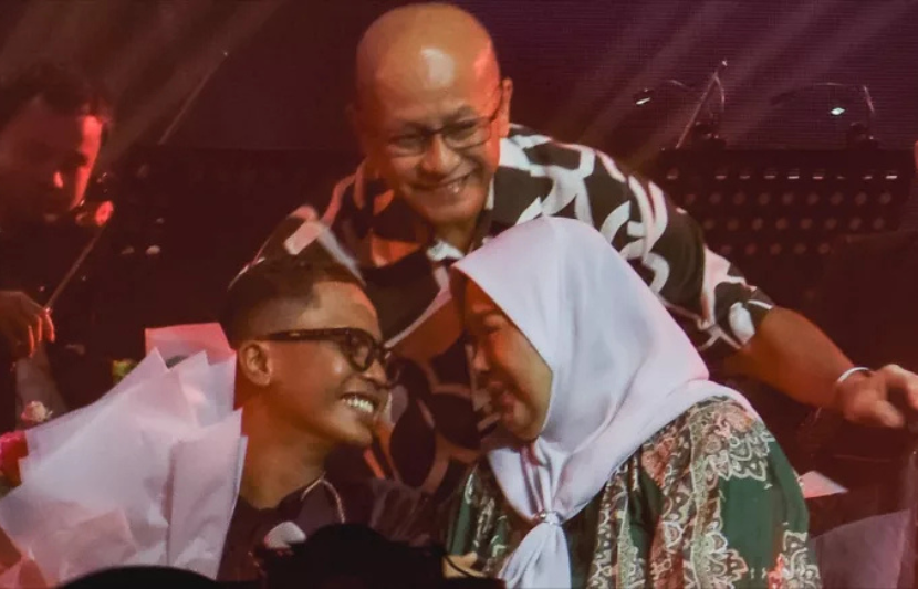 Hafiz ketika bersama bapa dan arwah ibunya sewaktu konsert sulungnya pada 1 November lalu.