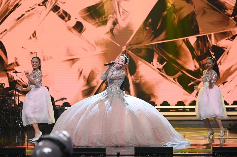 Elaine sentias tampil dengan fesyen menarik di atas pentas.