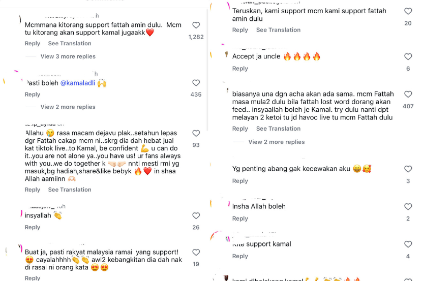 "Rasa macam dejavu pula. Setahun selepas dengar Fattah cakap macam ini, sekarang dia dah hebat jual kat TikTok. Kepada Kamal, anda kena yakin kerana anda tidak keseorangan. Anda ada kami.