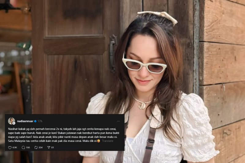 Untuk rekod, Nadia pernah mendirikan rumah tangga bersama Hafiz Salleh pada 2015 namun berpisah pada 2023.