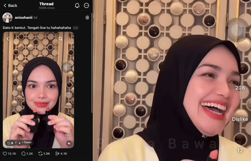 Sebelum ini, tular video Datuk K terkentut sehingga membuatkan Siti ketawa ketika membuat siaran langsung menjual produk gincu.