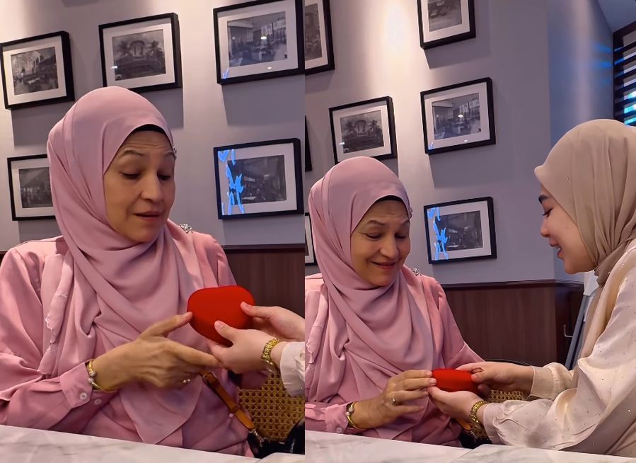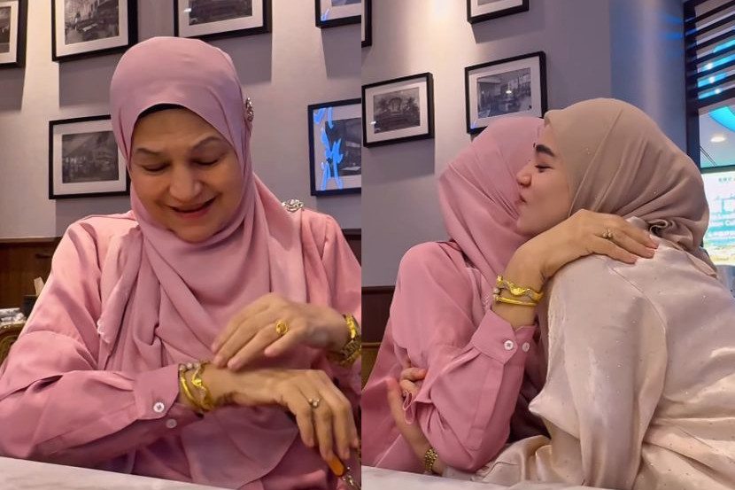 Dalam perkongsian video itu, Uyaina dilihat memakaikan gelang tangan emas itu kepada ibu tercinta.