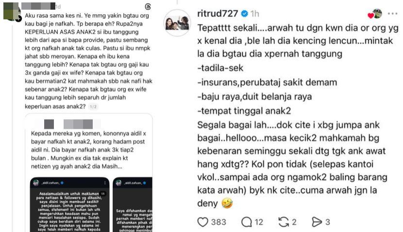 ARTIKEL BERKAITAN: Individu ‘back up’ Aidil Zafuan tak culas bayar nafkah, Rita Rudaini rayu bekas suami tunjuk resit… “Semua nak tengok yang berhutang skip bayar berapa bulan?”