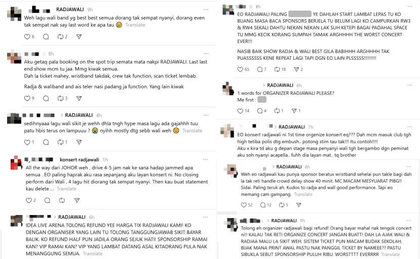 KETERUJAAN penonton menyaksikan persembahan kumpulan kegemaran dari Indonesia, Wali Band, tidak berpanjangan apabila konsert RadjaWali dihentikan secara tiba-tiba tepat pukul 12 tengah malam Ahad.Insiden itu mencetuskan rasa tidak puas hati dalam kalangan penonton sehingga menjadi perbualan hangat di media sosial selain ramai meluahkan kekecewaan terhadap pihak penganjur. Rata-rata netizen menyerang media sosial pihak penganjur selain menuntut kembali wang mereka kerana berasa rugi terhadap konsert berkenaan.Penonton bengang dengan penganjur konsert RadjaWali."Mula lambat habis awal! Orang bayarlah, biadab! Tak reti buat konsert jangan jadi penganjur."Dah kena sidai sejam sebab tunggu VIP sampai, aku bayar konsert ini bukan free! Pulang balik duit aku!"Konsert paling gagal! Aku datang dari Johor semata nak tengok Wali Band tapi kecewa!," antara komen netizen.ARTIKEL BERKAITAN: Radja trauma insiden ugut bunuh penganjur konsert, bukan penghalang hibur peminat di MalaysiaARTIKEL BERKAITAN: Wali Band ubati rindu ke Malaysia, senarai lagu konsert ikut pilihan peminatDifahamkan, ketika Wali Band sedang menyampaikan lagu popular mereka, Ada Gajah Di Balik Batu, pentas tiba-tiba digelapkan sekali gus menandakan penamatan konsert secara mengejut.Suasana di Idea Live Arena dilaporkan bertukar dan dipercayai terdapat penonton menjerit ‘boo’ sebagai tanda protes terhadap pengumuman tersebut.Lebih mengecewakan, beberapa lagu hit Wali Band seperti Yank, Cari Jodoh dan Tobat Maksiat tidak sempat dipersembahkan.Antara komen yang ditinggalkan netizen.Menurut perkongsian di media sosial, konsert berkenaan terpaksa dihentikan kerana telah melebihi masa yang ditetapkan oleh pihak pengurusan lokasi.Bagaimanapun, tindakan Wali Band meraih pujian apabila mereka tampil memohon maaf kepada peminat sebelum menyanyikan beberapa lagu secara akapela bersama penonton walaupun tanpa iringan muzik.Sebelum itu, kumpulan Radja terlebih dahulu menghangatkan pentas dengan mempersembahkan lagu-lagu popular mereka antaranya Benci Bilang Cinta, Takkan Melupakanmu, Jujur, Tulus dan Patah Hati.Sementara itu, pihak penganjur dikatakan telah membuat satu kenyataan di media sosial berhubung insiden berkenaan namun memadamnya selepas kurang sejam dimuat naik.Jadilah sebahagian daripada geng mStar! Follow kami di Telegram, Twitter, TikTok, Facebook, Instagram dan YouTube