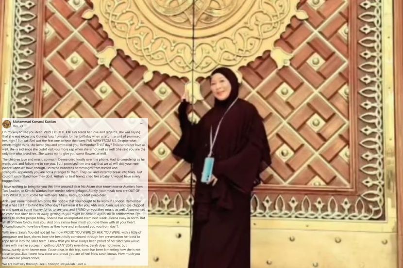 SUAMI kepada pelakon Allahyarham Nadia Kesuma tidak sabar untuk bertemu jenazah isterinya buat kali terakhir.Menerusi luahan yang dimuat naik, Prof Dr Muhammad Kamarul Kabilan Abdullah berkongsi kenangan serta beberapa individu penting dalam hidup mereka. Biarpun tidak semua ahli keluarga dapat menziarahi Allahyarham, namun kehilangan Nadia pastinya meninggalkan kesan yang cukup mendalam. "Dalam perjalanan untuk berjumpa denganmu sayang, sangat teruja. Luahan Muhammad Kamarul buat isteri tercinta. "Anak-anak sangat sayang dan terlalu merindui kamu. Deena menangis teresak-esak di telefon. Terpaksa memujuk Iqi kerana dia mahu ikut berjumpa kamu. "Aku berjanji kepadanya suatu hari nanti kita semua akan ziarah istana barumu," tulisnya. Dalam hantaran tersebut, Muhammad Kamarul turut menyentuh hati ramai apabila bercerita makanan kegemaran Allahyarham. "Aku tidak bawa apa-apa untukmu kali ini. Tiada chay kuey teow Adam atau masakan Auntie dari Tun Saadon atau kimchi wantan Medan Selera Gelugor. ARTIKEL BERKAITAN: Arwah tak pernah cerita tentang sakit jantung, Anne Abdullah sedih terima berita Nadia Kesuma meninggal dunia… “Rasa mahu terbang ke Jeddah” ARTIKEL BERKAITAN: “Dia adalah isteri yang taat, penyayang, ikhlas dan setia” - Suami kongsi luahan pilu, jenazah Nadia Kesuma akan dikebumi di Jeddah"Pastinyanya hidangan kamu sekarang luar biasa. Tapi aku datang dengan penuh kasih sayang," luahnya. Muhammad Kamarul turut berkongsi rasa terharu apabila ramai yang menghubunginya menyampaikan ucapan takziah selain meluahkan rasa sedih. Dalam masa sama, Muhammad Kamarul sempat menitip kata-kata manis sebelum tiba di Jeddah. Gambar kenangan keluarga Nadia. "Menerima ratusan mesej daripada kawan-kawan dan juga orang yang tidak dikenali. Rupanya kamu bukan orang asing bagi mereka. "Mereka menelefon dan terus menangis. Aku sendiri tidak faham bagaimana mereka boleh begitu. "Kami sudah separuh jalan, jumpa kamu malam ini. Sayang kamu," luahnya. Nadia disahkan meninggal dunia di Jeddah. Nadia atau nama sebenarnya, Nadiah Kasumawati Abdul Karim, 50, sebelum ini disahkan meninggal dunia di Jeddah, Arab Saudi akibat sakit jantung. Sebelum ini dia dilaporkan gagal dikesan selepas tiba di Jeddah pada Khamis ketika dalam perjalanan mengikuti pakej umrah ziarah bersama sebuah agensi.Dia bersama jemaah lain sepatutnya meneruskan penerbangan ke London selepas transit di Jeddah selama beberapa jam dan akan kembali semula ke Jeddah bagi urusan umrah. Jenazah Allahyarham kini berada di Hospital King Fahd dan dijangkan akan dikebumikan di sana.Jadilah sebahagian daripada geng mStar! Follow kami di Telegram, Twitter, TikTok, Facebook, Instagram dan YouTube
