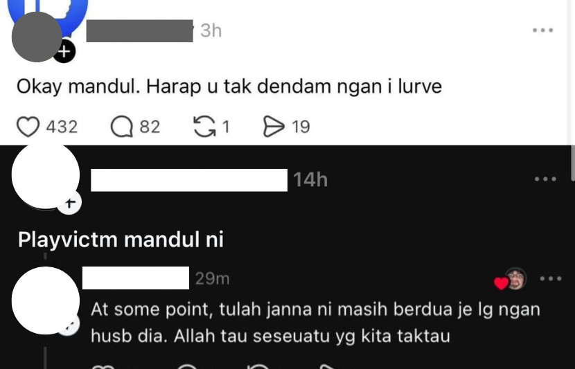 PELAKON Janna Nick terus menjadi sasaran netizen yang meluahkan rasa benci susulan kontroversi melibatkan dirinya dengan aktres Puteri Balqis.Bukan sekadar menyentuh isu yang sedang berlaku, malah ada juga yang mengeluarkan kata-kata buruk terhadap pelakon itu. Lebih teruk lagi apabila terdapat komen yang menyentuh perkara sensitif, termasuk memanggilnya mandul kerana belum dikurniakan cahaya mata. Antara kecaman diterima Janna.“Okay mandul. Harap awak tak dendam dengan saya.”“Play victim mandul ini.”“Dah tahu kenapa Allah tak bagi dia anak sekarang? Cuba perbaiki cermin diri. Kadang-kadang Allah tak bagi bersebab,” tulis netizen.Selain itu, satu video mukbang yang dikongsi oleh Janna turut menjadi sasaran kritikan.ARTIKEL BERKAITAN: Janna Nick mohon maaf kepada Puteri Balqis, sedia jumpa untuk leraikan sengketa… “Saya tak benci awak dan tak backup pembuli”ARTIKEL BERKAITAN: “Kalau saya maki akak hari ini 20 kali, boleh lepaskan saya tak?” - Puteri Balqis tempelak Janna NickDalam video tersebut, terdapat segelintir netizen yang mengejek penampilannya selain mempersendakan bentuk fizikalnya secara terbuka.“Tu jari ke, Janna? Gemuknya.”“Maaf, pertama kali pandang saya ingat awak makan guna kaki.”“Jari ke senduk?” ujar netizen lain.Namun begitu, terdapat juga segelintir pengguna media sosial yang menegaskan bahawa tindakan sebegitu tidak sepatutnya berlaku dan setiap individu harus dihormati tanpa mengira keadaan.Netizen turut mengecam fizikal Janna.Sebelum ini, Janna secara terbuka tampil memohon maaf kepada aktres Puteri Balqis atau mesra disapa Aqish susulan kekecohan dan salah faham yang berlaku antara mereka.Kenyataan tersebut dibuat oleh Janna selepas tidak menerima sebarang maklum balas daripada Puteri Balqis.Janna turut memberitahu dia masih menunggu respons Puteri Balqis selepas mengajak aktres itu bersemuka secara atas talian.Pelakon itu juga memohon maaf atas kekeliruan berhubung hantaran yang pernah dibuat di laman Threads.Jadilah sebahagian daripada geng mStar! Follow kami di Telegram, Twitter, TikTok, Facebook, Instagram dan YouTube