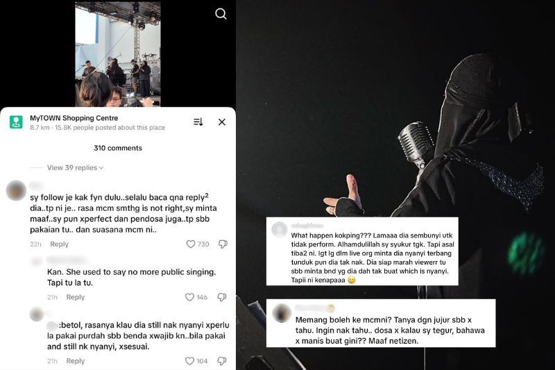 PENAMPILAN penyanyi dan penulis lirik, Fynn Jamal di konsert Atas Angin Festival yang berlangsung pada Sabtu lalu menerima pelbagai reaksi dalam kalangan netizen.Rata-rata peminat meluahkan rasa kecewa dan terkejut melihat kemunculan Fynn atau Nur Affina Yanti Jamalludin, 44, yang sebelum ini dikatakan tidak mahu membuat persembahan nyanyian secara terbuka. "Apa sudah jadi kokping? (panggilan Fynn). Lama dia sembunyi untuk tidak buat persembahan. Ingat lagi dalam live orang minta dia nyanyi Terbang Tunduk pun dia tak nak, siap marah sebab minta benda yang dia dah tak buat iaitu menyanyi. Netizen meluahkan kekecewaan di media sosial."Saya follow saja Fyn dulu selalu baca dia balas soalan netzen. Tapi ini rasa macam ada yang tak kena. Saya minta maaf, saya pun tak sempurna pendosa juga tapi sebab pakaian itu dan suasana macam ni (konsert). "Kan, dia pernah cakap tak mahu lagi menyanyi di khalayak ramai, tapi tulah," tulis netizen. Dalam pada itu, segelintir netizen turut mempersoalkan tindakan Fynn membuat persembahan yang disifatkan tidak selari dengan imejnya yang berpurdah.ARTIKEL BERKAITAN: Fynn Jamal dikecam beri nasihat kasar kepada remaja bermasalah - “Dah la tak cerdik, degil pula!”ARTIKEL BERKAITAN: Pendakwah tegur Fynn Jamal, “Jika tak tahu, mengaku tak tahu”"Memang boleh ke macam ni? (menyanyi konsert). Tanya dengan jujur sebab tak tahu. Berdosa ke kalau saya tegur bahawa tak manis buat begini. Maaf netizen. "Rasanya kalau dia (Fynn) masih lagi nak menyanyi tak perlulah pakai purdah (niqab) sebab benda ni tak wajib kan. Bila pakai dan masih menyanyi macam tak sesuai," luah netizen. Sebelum ini, tular sebuah video memaparkan Fynn menyampaikan lagu Suatu Pernah Ketika ketika membuat persembahan di Atas Angin Festival yang berlangsung di Rooftop MyTOWN, Kuala Lumpur. Terdapat netizen meluahkan rasa kurang senang melihat penyanyi berkenaan membuat persembahan dalam suasana konsert yang disifatkan tidak menjaga batas pergaulan antara lelaki dan perempuan. Malah, penampilan Fynn yang berniqab juga menjadi antara perkara yang diperdebatkan warganet.Jadilah sebahagian daripada geng mStar! Follow kami di Telegram, Twitter, TikTok, Facebook, Instagram dan YouTube