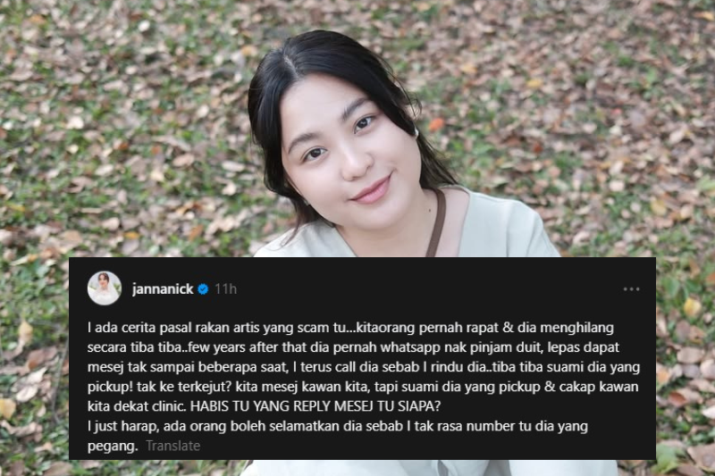 PELAKON dan pengacara Janna Nick mendedahkan dia pernah berdepan situasi mencurigakan melibatkan seorang rakan selebriti yang dikatakan terlibat dalam penipuan kewangan. Janna atau Nurul Jannah Muner, 31, berkata hubungan mereka sebelum ini pernah rapat, namun menjadi renggang selepas pelakon wanita itu menghilangkan diri. "Saya ada cerita fasal rakan artis yang scam tu. Kami pernah rapat tapi dia menghilangkan (diri) secara tiba-tiba. "Selepas beberapa tahun, dia pernah WhatsApp sebab nak pinjam duit, namun lepas dapat mesej itu, tidak sampai beberapa saat saya terus hubungi dia sebab rindu," katanya melalui satu hantaran di Threads miliknya pada Selasa. Perkongsian Janna mendapat perhatian ramai. Bagaimanapun, situasi teruja tersebut bertukar pelik apabila panggilan tersebut bukan diangkat oleh aktres berkenaan. "Tiba-tiba suami dia yang angkat panggilan. Tak ke terkejut? kita mesej kawan kita, tapi suami pula yang angkat dan cakap kawan kita berada di klinik."Habis itu, siapa yang mesej (minta pinjam duit) saya tadi? Saya cuma harap ada orang boleh selamatkan dia sebab saya tak rasa nombor itu dia yang pegang," ujarnya. Dalam ruangan komen, Janna turut meminta agar pihak berkuasa dapat menjejak wanita berkenaan.ARTIKEL BERKAITAN: Nama Azar Azmi kena petik, didakwa scam RM300,000… Ramai mangsa tengah cariARTIKEL BERKAITAN: Kejam sungguh netizen, teruk Janna Nick kena hentam… Tergamak sentuh soal cahaya mata"Semoga pihak berkuasa pun dapatlah cari dekat mana dia berada sekarang sebab takut dia tak berdaya nak selamatkan diri sendiri," ujarnya. Sebelum ini kecoh di halaman Threads apabil seorang individu tampil mendakwa dirinya telah ditipu oleh seorang selebriti wanita dan suami sebanyak RM300,000. Dia turut memuat naik bukti tangkap layar kad pengenalan milik selebriti wanita itu dan suaminya selain memohon bantuan ramai untuk menjejak pasangan berkenaan. Janna juga meminta supaya pihak berkuasa dapat bertindak segera. Menerusi gambar berkenaan tertera nama dipercayai pelakon Azar Azmi yang sudah lama tidak muncul dalam industri seni. Pada perkongsian lain, individu itu turut mendakwa pasangan suami isteri itu sedang melarikan diri dan tidak berada di satu tempat yang sama.Setakat ini tiada sebarang kenyataan rasmi dikeluarkan oleh pihak terlibat berhubung dakwaan berkenaan.Jadilah sebahagian daripada geng mStar! Follow kami di Telegram, Twitter, TikTok, Facebook, Instagram dan YouTube