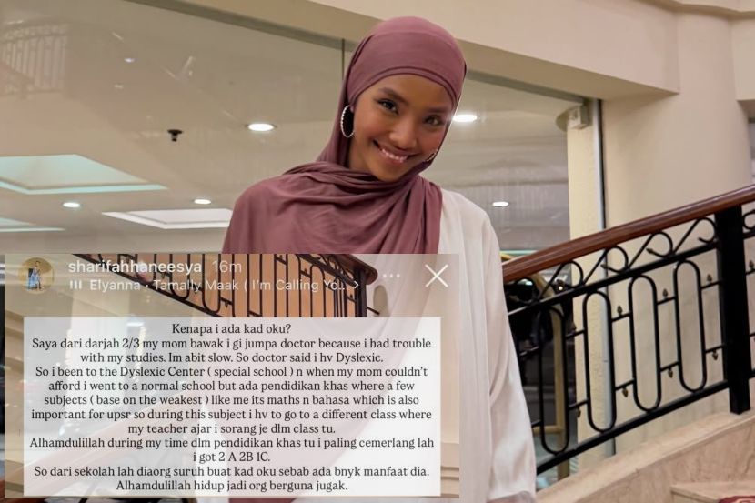PELAKON Haneesya Hanee memberitahu dia merupakan pemegang kad Orang Kurang Upaya (OKU) sejak di bangku sekolah susulan mengalami masalah dalam pembelajaran.Menurut Haneesya atau Sharifah Haneesya Hanee Sayed Sahlan, 26, dia dikesan menghidap disleksia dan pernah mendapat pendidikan di sebuah pusat khas bagi kanak-kanak sepertinya. "Sejak darjah 2 atau 3 ibu saya bawa pergi jumpa doktor sebab saya ada masalah dalam pembelajaran. Saya sedikit perlahan.Status yang dikongsi Haneesya memberitahu dia pemegang kad OKU. "Doktor beritahu saya ada disleksia. Jadi saya pergi ke usat disleksia (sekolah istimewa) dan apabila ibu tidak mampu, saya masuk sekolah biasa."Di sana ada pendidikan khas di mana beberapa subjek saya perlu mengikuti kelas berbeza dan guru hanya mengajar saya seorang," katanya.Haneesya berkongsi perkara tersebut dalam satu hantaran yang dimuat naik di InstaStory miliknya pada Khamis.ARTIKEL BERKAITAN: Haneesya Hanee tak kisah dikecam kerana kesilapan lalu, akui sudah berubah...“Saya bukan lagi budak 18 tahun itu” ARTIKEL BERKAITAN: Haneesya Hanee tuntut bayaran tertunggak RM18,000, dakwa individu uruskan projek lesapkan wangPelakon ini memaklumkan dia perlu diberi perhatian lebih untuk subjek Matematik dan Bahasa Melayu ketika di sekolah rendah.Haneesya juga berbangga kerana menjadi antara pelajar yang memperoleh keputusan cemerlang bagi Ujian Pencapaian Sekolah Rendah (UPSR).Dia dalam masa sama memaklumkan menerima banyak manfaat sebagai pemegang kad OKU dan meluahkan rasa syukur kerana keadaannya tidak menjejaskan orang lain.Haneesya meluahkan rasa kurang senang dengan isu pelajar memijak al-Quran. "Jadi dari sekolah lagi mereka suruh buat kad OKU sebab ada banyak manfaat. Alhamdulillah hidup jadi orang berguna juga," luahnya.Terdahulu, Haneesya menerusi satu hantaran video meluahkan rasa kurang senang terhadap isu pelajar lelaki yang didakwa atas pertuduhan memijak al-Quran.Dalam hantaran tersebut dia berkongsi tentang statusnya sebagai OKU namun masih mampu berfikir secara waras dan tidak melakukan sebarang tindakan sebegitu.Jadilah sebahagian daripada geng mStar! Follow kami di Telegram, Twitter, TikTok, Facebook, Instagram dan YouTube