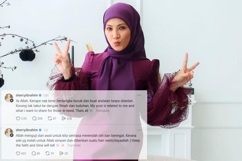 PELAKON Sherry Ibrahim meluahkan rasa kesal apabila perkongsiannya di laman sosial disalah erti sehingga menimbulkan fitnah dalam kalangan pengikut.Sherry atau Syarizad Ibrahim, 43, turut berasa kurang senang dengan beberapa komen yang mengaitkan individu lain dalam setiap luahannya. "Kenapa mahu bersangka buruk dan membuat andaian tanpa disedari? Tidak takutkah dengan fitnah dan tuduhan?Perkongsian Sherry disalah erti sesetengah pihak. "Hantaran saya berkaitan dengan diri sendiri dan apa yang saya mahu kongsi untuk mereka yang memerlukan. Itu sahaja," katanya dalam satu status di laman Threads.Menerusi ruangan komen, Sherry juga menegaskan perkongsiannya tiada kaitan dengan mana-mana pihak yang pernah rapat dengannya sebelum ini.Malah, pelakon ini tegas memberi amaran supaya menghentikan segala kata-kata buruk terhadapnya.ARTIKEL BERKAITAN: Sherry Ibrahim minta jangan ungkit kisah lalu... “Saya sendiri sudah reda dan berdamai dengan takdir” ARTIKEL BERKAITAN: Jangan mudah kongsi kisah sedih pada lelaki, Sherry Ibrahim bimbang wanita lemah jadi sasaran"Tiada kena-mengena dengan kisah silam. Saya sentiasa mendoakan yang terbaik buat semua."Saya berdiam diri kerana hormat, tetapi saya tidak hormat pembulian. Jangan lihat kesabaran saya sebagai satu kelemahan," luahnya.Sherry tampil memberi respons selepas mendapat pelbagai komen netizen. Terdahulu, Sherry berkongsi luahan tentang ketenangan ketika berdepan ujian.Hantaran tersebut mendapat pelbagai respons termasuk kata-kata yang menuduh dia sengaja mahu mencari perhatian.Jadilah sebahagian daripada geng mStar! Follow kami di Telegram, Twitter, TikTok, Facebook, Instagram dan YouTube