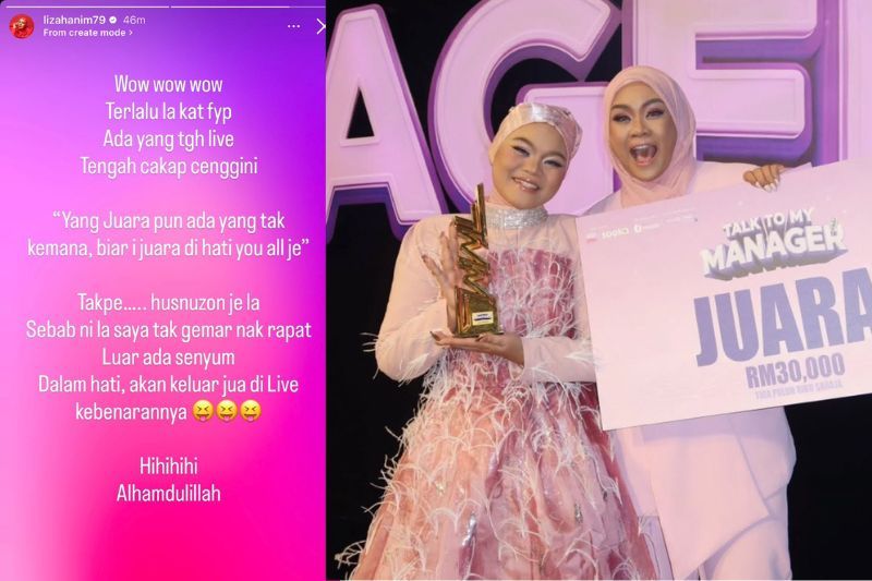 PENYANYI Liza Hanim meluahkan rasa kurang senang apabila masih ada pihak memperlekehkan kejayaan anaknya, Marsya Qistina sebagai juara program realiti Talk To My Manager (TTMM) musim pertama.Enggan mendedahkan individu dimaksudkan, Liza, 46, bagaimanapun mengingatkan pihak berkenaan agar lebih menjaga tutur kata. "No komen. Saya hanya cakap satu perkara saja, apa yang keluar daripada mulut kita adalah cerminan diri sendiri. Luahan Liza yang dimuat naik di Instastory miliknya."Saya ucapkan selamat berjaya kepada semua peserta. Fokus pada diri sendiri, tak perlu cakap apa-apa. Perjalanan masih panjang, setiap orang ada target dan pencapaian yang kita mahukan. "Kita tidak boleh nak pukul rata. Baik kita fokus pada diri sendiri daripada nak cakap fasal orang lain," katanya ketika dihubungi mStar. Sebelum itu, Liza menerusi Instagram memuat naik satu hantaran meluahkan rasa kurang senang apabila mengetahui ada individu bercakap buruk mengenai anaknya di media sosial.ARTIKEL BERKAITAN: Anak dianggap tak menyerlah lepas TTMM, Liza Hanim kecewa Marsya jadi sasaran kecaman netizenARTIKEL BERKAITAN: Liza Hanim letak syarat pembuli wajib bersemuka mohon maaf… “Jadilah seperti lelaki”Dakwanya individu terbabit membuat siaran langsung dengan mengeluarkan kenyataan mengecilkan Marsya meskipun bergelar juara program berkenaan."Wow terlalu dekat FYP, ada yang tengah live cakap macam ini 'yang juara pun ada yang tak ke mana, biar I juara di hati anda saja'. Tak mengapa husnuzon saja. No komen. Saya hanya cakap satu perkara saja, apa yang keluar daripada mulut kita adalah cerminan diri sendiri. LIZA HANIMPENYANYI"Sebab inilah saya tak gemar nak rapat, luar senyum tapi dalam hati akan keluar juga di 'live' tentang kebenarannya," tulisnya. Untuk info, Liza pernah berkongsi mengenai situasi Marsya yang didakwa dibuli di media sosial selepas ada pihak mempertikaikan kredibilitinya sebagai juara TTMM musim pertama. Menurut Liza, dakwaan kononnya anaknya kurang menyerlah tidak sepatutnya timbul memandangkan Marsya kini sedang berusaha mengimbangi kerjaya seni dan jadual kuliah.Jadilah sebahagian daripada geng mStar! Follow kami di Telegram, Twitter, TikTok, Facebook, Instagram dan YouTubeTONTON VIDEO PILIHAN!