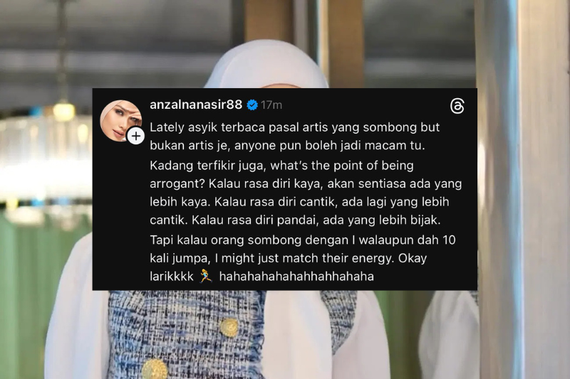 PELAKON Anzalna Nasir berpendapat tiada keperluan bagi mana-mana individu termasuk rakan artis untuk bersikap sombong sesama manusia.Bagi Anzalna atau Nur Anzalna Md Nasir, 38, kelebihan dari segi kekayaan, kecantikan mahupun kepandaian bukanlah alasan untuk mendabik dada kepada orang lain. "Akhir-akhir ini asyik terbaca fasal artis yang sombong. Tapi bukan hanya sekadar artis, sesiapa sahaja pun boleh jadi seperti itu. Anzalna berkongsi perkara itu di halaman Threadsnya. "Kadang terfikir juga, apa gunanya bersikap sombong? Kalau rasa diri kaya, akan sentiasa ada yang lebih kaya. "Kalau rasa diri cantik, ada lagi yang lebih cantik. Kalau rasa diri pandai, ada yang lebih bijak," katanya.Anzalna berkongsi perkara itu menerusi satu hantaran di platform Threads miliknya pada Ahad. ARTIKEL BERKAITAN: Pernah boros berbelanja RM100,000 untuk barangan mewah, Anzalna Nasir kini pilih bantu insan memerlukanARTIKEL BERKAITAN: Hampir minta batal perjalanan, Anzalna Nasir kongsi pengalaman luar biasa naik ‘submarine’ bersama keluargaHantaran tersebut dibuat susulan dakwaan netizen mengenai segelintir selebriti yang dikatakan bersikap sombong apabila disapa oleh peminat di tempat awam.Dalam pada itu kata Anzalna kesabarannya juga ada batas terutama jika berhadapan dengan individu yang tidak tahu menghormati orang lain.Tambanhnya, dia tidak teragak-agak untuk memberikan layanan yang sama sekiranya terdapat individu berlagak sombong walaupun sudah berkali-kali bertemu.Anzalna akan bersikap sombong sekiranya dilayan seperti itu. "Tapi kalau orang sombong dengan saya walaupun sudah 10 kali berjumpa, saya mungkin akan 'match their energy' (balas dengan sikap yang sama)," ujarnya. Sebelum ini halaman Threads menjadi kecoh apabila netizen mendedahkan terdapat beberapa artis yang dikatakan sombong dengan mereka.Jadilah sebahagian daripada geng mStar! Follow kami di Telegram, Twitter, TikTok, Facebook, Instagram dan YouTubeTONTON VIDEO PILIHAN!