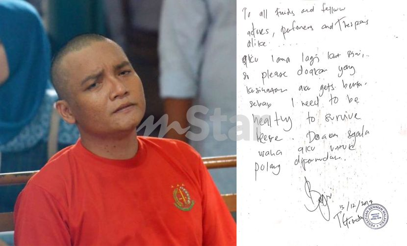 “AKU lama lagi kat sini,” itu antara kata-kata pelakon Khaeryll Benjamin Ibrahim atau Benjy pada sekeping nota tulisan tangan dari penjara Penjara Tanjung Gusta Medan, Indonesia yang meminta doa orang ramai.
