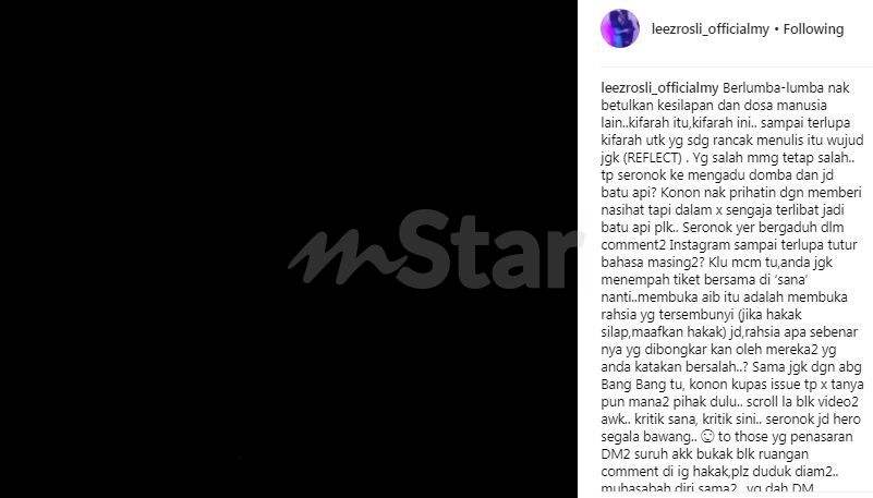 "Seronok yer bergaduh dalam komen-komen Instagram sampai terlupa tutur bahasa masing-masing? Kalau macam tu, anda juga menempah tiket bersama di ‘sana’ nanti," tulisnya pada kapsyen.