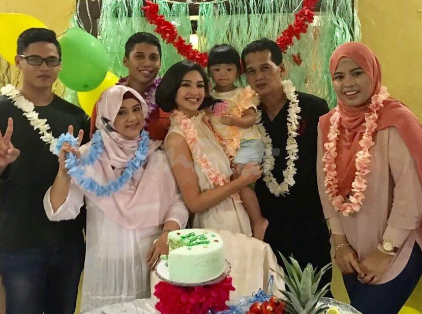 Atikah bersama ibu bapa dan ahli keluarganya.