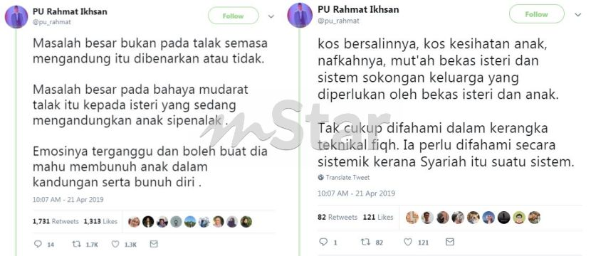 Rakan pendakwah, PU Rahmat Ikhsan berkata, perkara utama yang perlu diberi perhatian mengenai isu perceraian ketika sedang hamil ialah mengenai emosi wanita yang diceraikan.