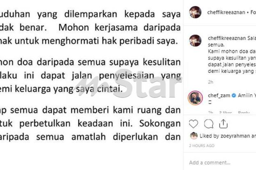 Chef Fikree berharap semua pihak mendoakan dia dapat menyelesaikan masalah rumah tangganya dengan baik.