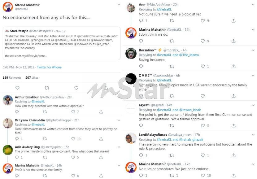 Pada Selasa, anak sulung kepada perdana menteri iaitu Datin Paduka Marina Mahathir tampil menyatakan bahawa dia dan anggota keluarga yang lain tidak mengetahui mengenai filem tersebut.