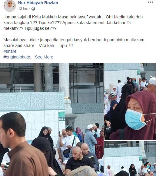 "Jadi yang kata Sajat kena tangkap dan dibawa keluar semua tu tak betul. Dia masih ada di Masjidil Haram, Makkah.