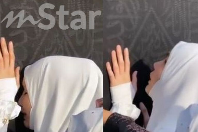 Kali ini menerusi video yang dimuat naik di Instastory pada Khamis, Sajat dilihat sedang menangis ketika mencium Kaabah.