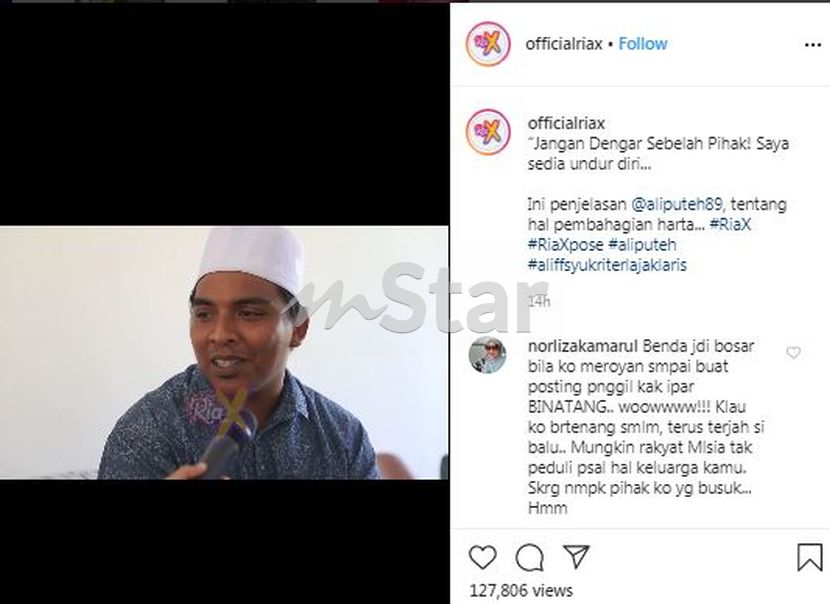 Pada malam Rabu, Ali mencetuskan kemarahan netizen apabila melemparkan status berbaur hinaan kepada balu abangnya.