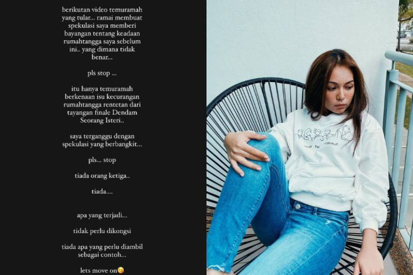 PELAKON Nad Zainal menyangkal dakwaan kononnya memberi bayangan tentang keadaan rumah tangganya dalam satu sesi temu bual yang sedang tular di media sosial ketika ini. Nad atau Farah Nadia Zainal Abidin, 32, sebaliknya berkata, ia hanya temuramah berkenaan isu kecurangan rumah tanggan rentetan daripada tayangan finale drama bersiri Dendam Seorang Isteri baru-baru ini. "Berikutan video temuramah yang tular, ramai membuat spekulasi saya memberi bayangan tentang keadaan rumah tangga saya sebelum ini, yang mana tidak benar. "Please stop! Saya terganggu dengan spekulasi yang berbangkit," katanya menerusi hantaran di Instagram pada Selasa. Nad minta orang ramai henti buat spekulasi. Menerusi temu bual itu, Nad yang memberi contoh dirinya memberitahu sekiranya pasangan bersikap curang, dia lebih suka jika sang suami berterus terang dan tidak menipu dirinya. Kata Nad, sekiranya perkara itu berlaku kepada dirinya, dia tidak akan cuba pertahankan perkahwinan sebaliknya akan membiarkan suami untuk pergi ke pihak lain dan tidak perlu bergaduh demi mempertahankan rumah tangga. ARTIKEL BERKAITAN: Nad Zainal sudah bercerai, masih berkawan dengan bekas suami demi anak-anak ARTIKEL BERKAITAN: Klasik! Nad Zainal beri nama anak kedua... Budi Kalsom - “Semoga sentiasa indah pekerti, lembut perwatakannya” "Saya cakap sendiri dengan pasangan saya, kalau you dah tak ada hati, cakap terus dengan saya, tak payah tipu-tipu. I tak nak tahu daripada orang lain. "Sekarang ni, tak kisalah suami kita tu kaya ke, elok ke. Saya tak ada nak pujuk-pujuk. Just go lah! Malaslah nak gaduh-gaduh," katanya. Dalam pada itu, Nad menjelaskan penceraiannya dengan bekas suami iaitu Muhammad Faliq tiada kena mengena dengan kehadiran orang ketiga seperti didakwa berdasarkan temu bual berkenaan. Pelakon ini masih tidak mahu mendedahkan punca dan tarikh sebenar mereka berpisah. Sebaliknya kata Nad, apa yang terjadi tidak perlu dikongsi kepada umum dan tiada apa yang perlu diambil sebagai contoh. "Tiada orang ketiga. Tiada... Apa yang terjadi tidak perlu dikongsi. Tiada apa yang perlu diambil sebagai contoh. Let's move on," katanya. Pada Sabtu lalu, Nad mengejutkan peminat apabila mendedahkan ikatan perkahwinan selama tujuh tahun yang dibina bersama suami akhirnya terlerai. Pelakon tersebut bagaimanapun enggan mendedahkan punca dan tarikh sebenar dia dan Muhammad Faliq bercerai. Nad dan Muhammad Faliq mendirikan rumah tangga pada 18 Disember 2015 dan mereka dikurniakan dua cahaya mata iaitu Fahad Ibrahim, 6 dan Budi Kalsom, setahun. Dapatkan info dengan mudah dan pantas! Join grup Telegram mStar DI SINI